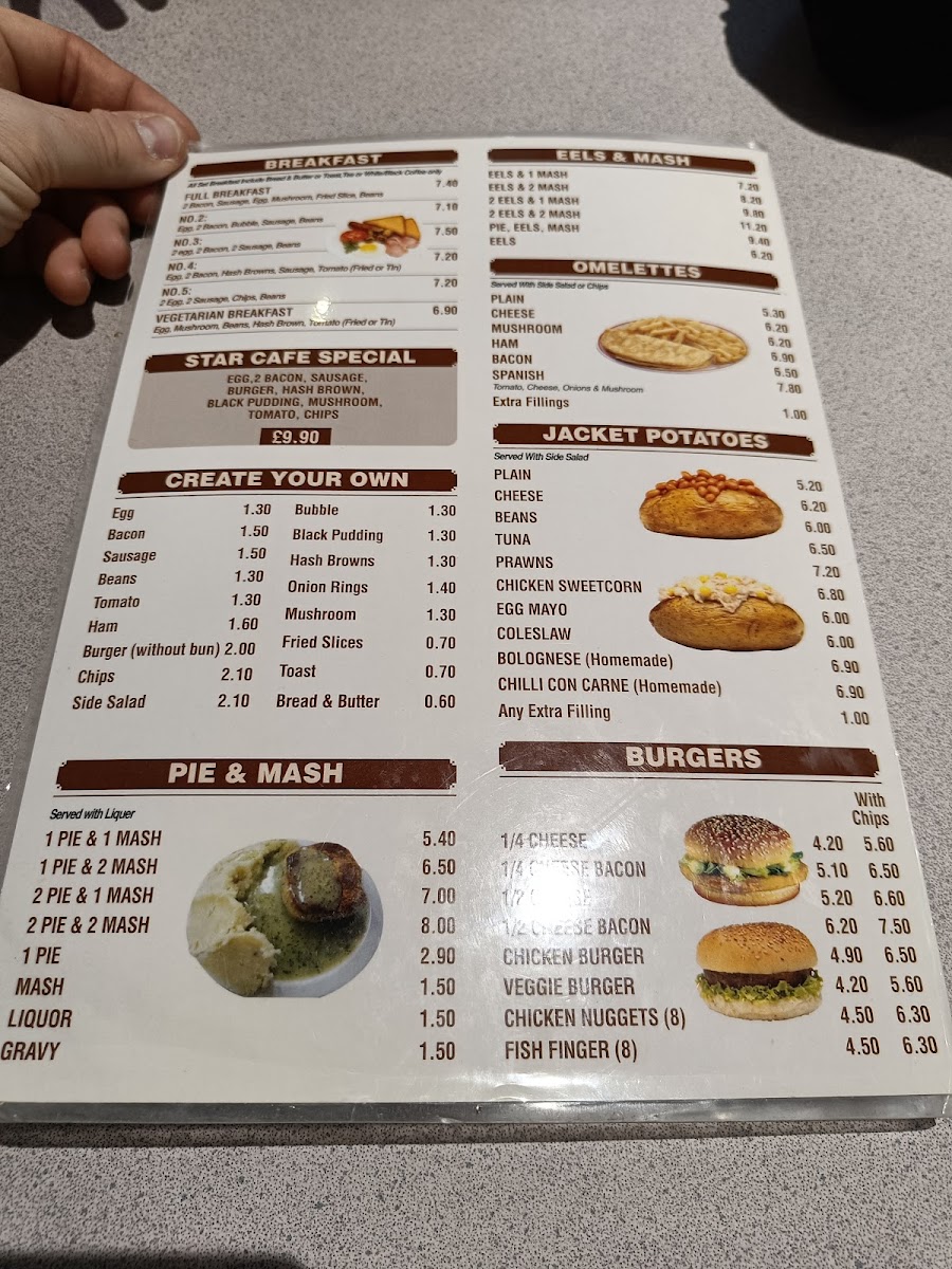 In summary, the Star Cafe Pie And Mash Rayleigh Menu stands out for its traditional flavors, generous portions, and warm service-a true comfort spot that honors the spirit of classic British dining.
